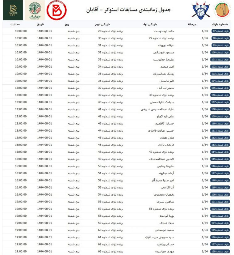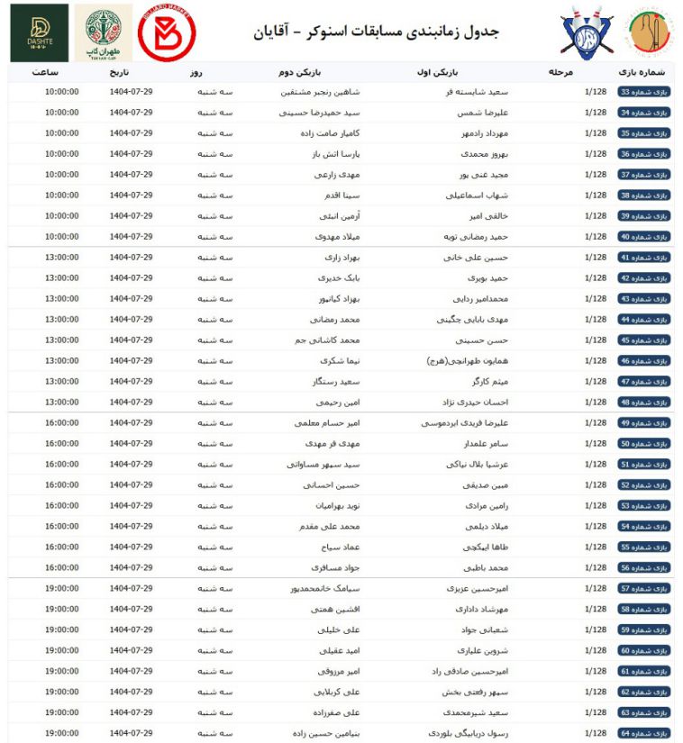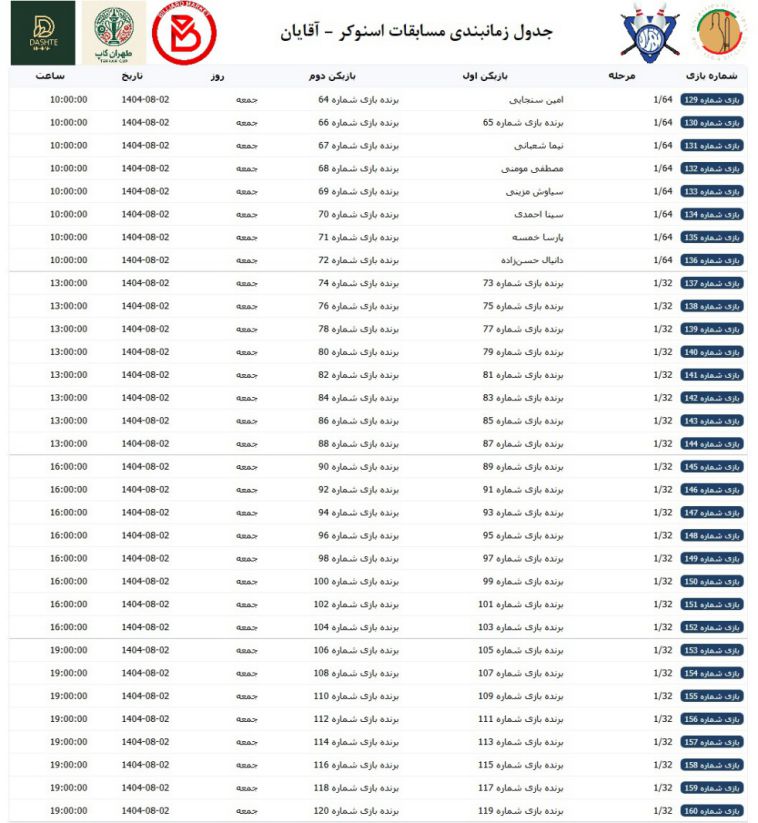 برنامه زمانبندی مسابقات اسنوکر - آقایان