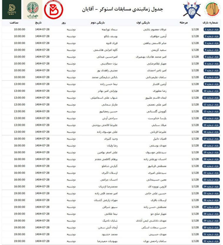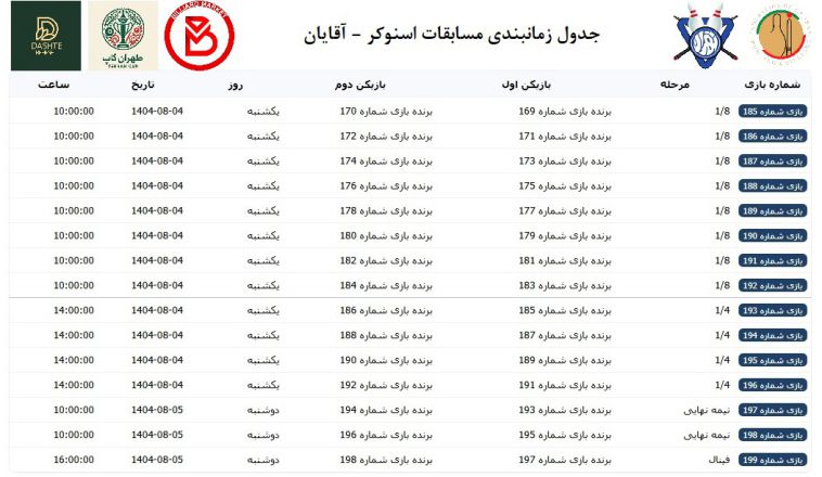 برنامه زمانبندی مسابقات اسنوکر - آقایان